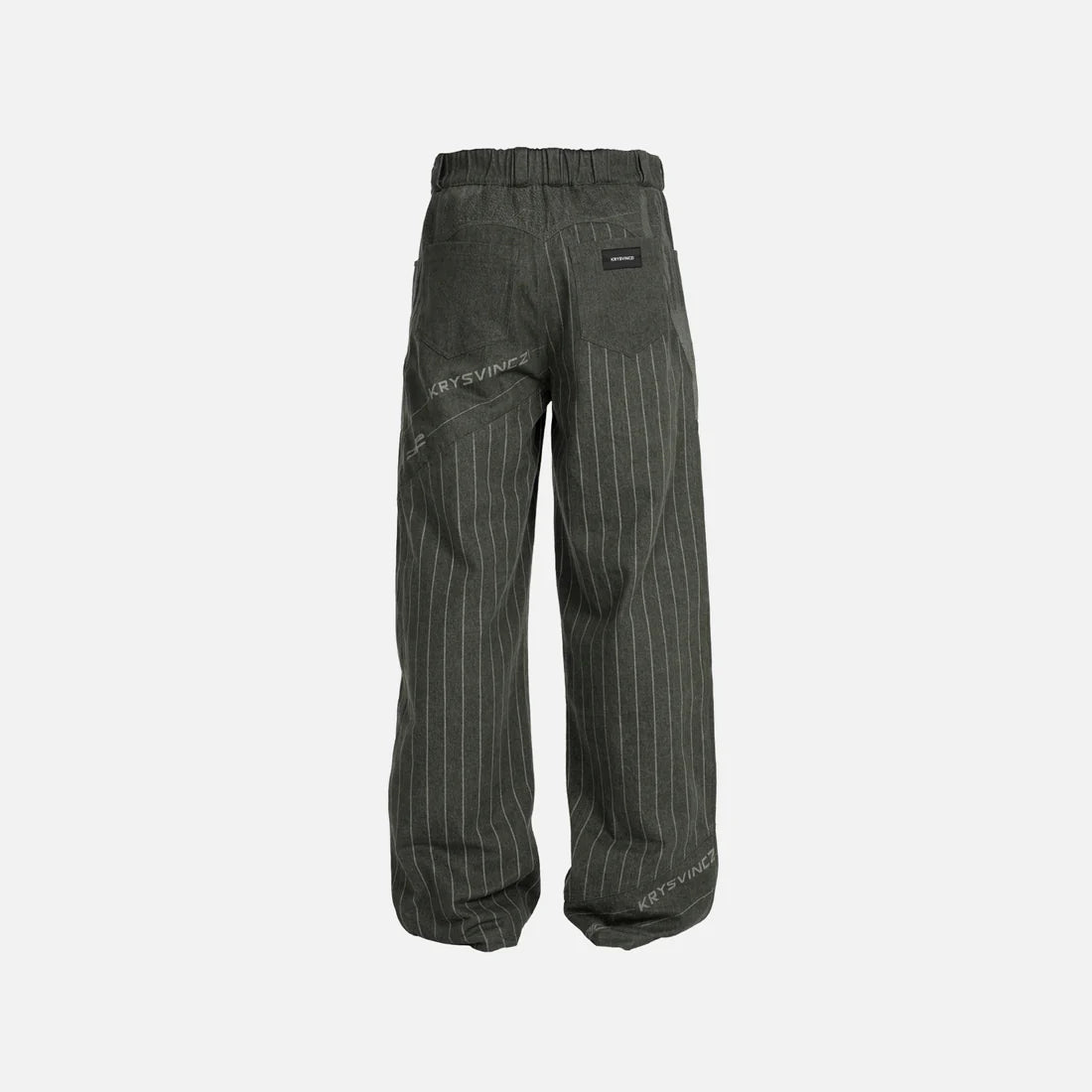 Baggy green-tinted denim pants with a laser-etched print.