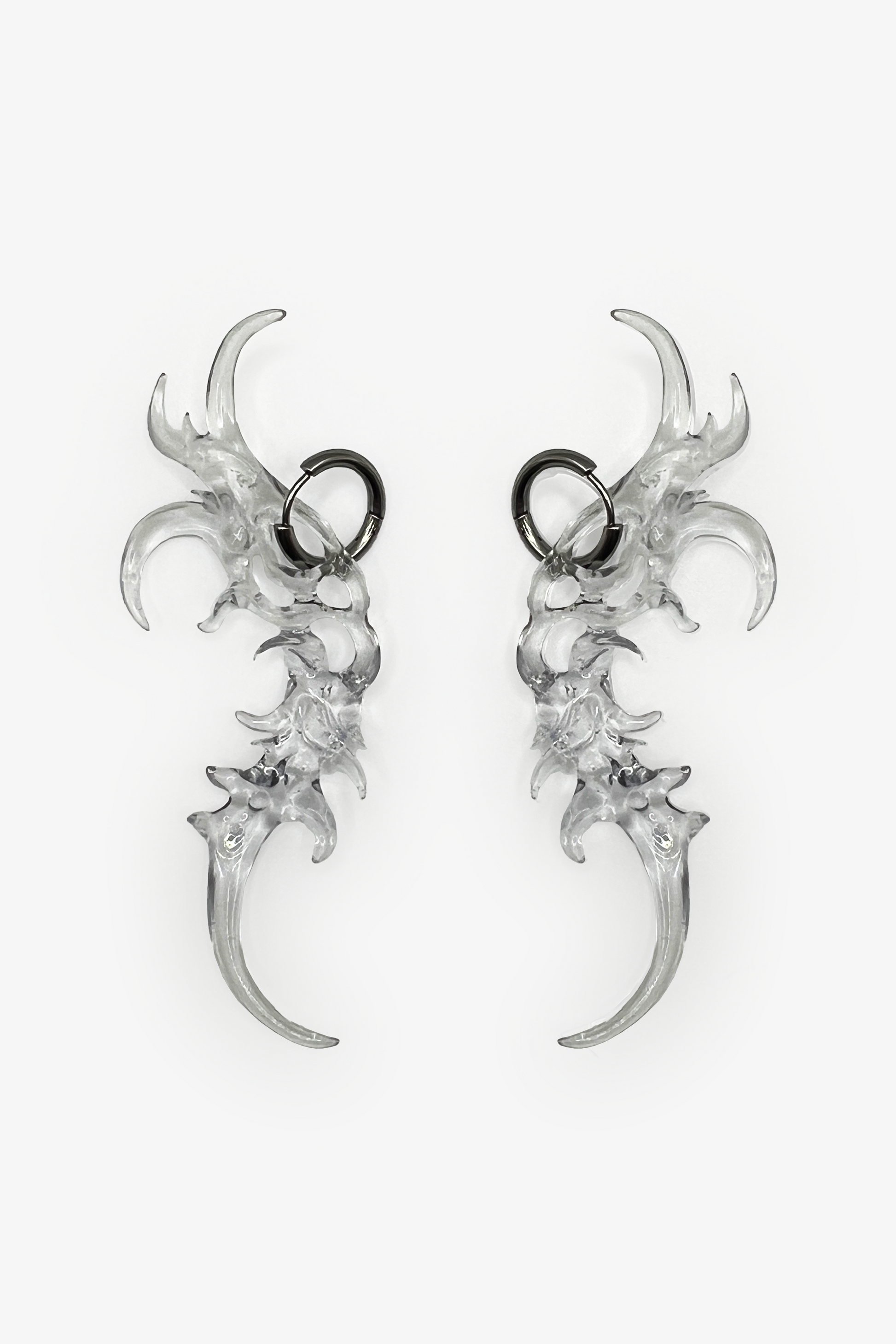 The Organic Form Earrings Transparent feature a mesmerizing design that mimics delicate natural forms. Their transparent finish allows for versatility and lightness, making them a unique accessory that beautifully complements any look.
